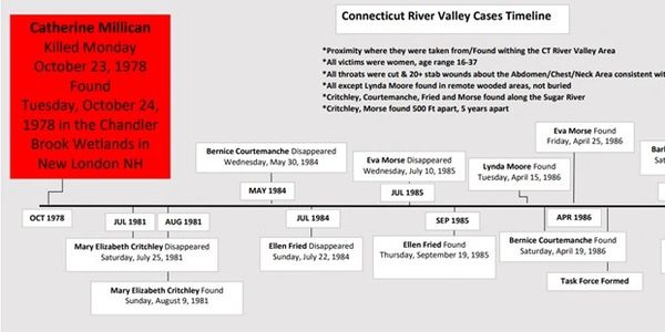 Catherine wasn't originally connected to the CT River Valley Cases. It wasn't until the Task Force was formed around 1986 that her case was connected. She was connected based off of age, location, demographic and the treatment of her remains.